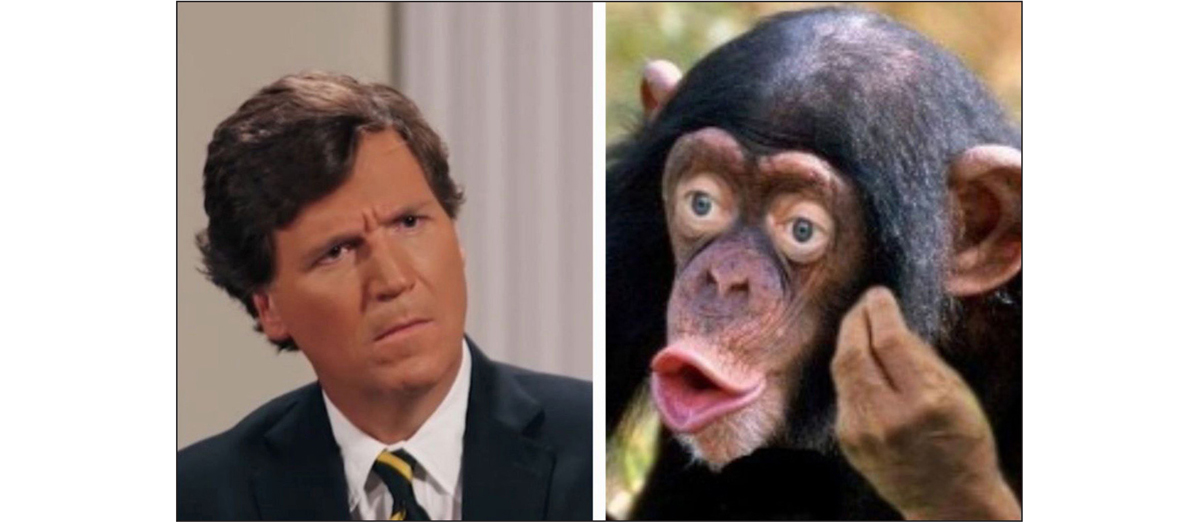[Tucker Carlson and a Chimpanzee with lips]. Posted by anonymous in comment thread on NEXTA Live, February 13, 2024. https://t.me/nexta_live/71029 [Last Accessed 13 February 2024].