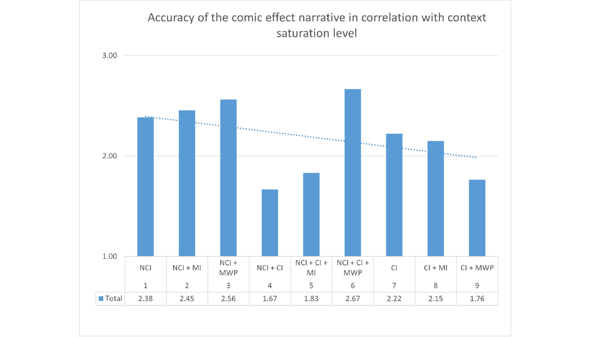 We rated the resulting 9 groups from 1 (the least contextual NCI), to 9 (CI + MWP, a combination that assumes the highest level of precise background information necessary for deciphering the meaning).